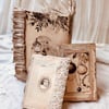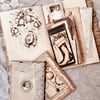 Pack of 20 sheets, with designed book pages in beige, brown and light coloured tones. It also comes with a background sheet (for double sided print), extra toppers, pockets, paper bags and matching holiday ephemera.