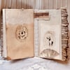 The journal I have created is printed on 80gsm ivory paper, on both sides (using the background page). I used the small covers as extra toppers for the journal.