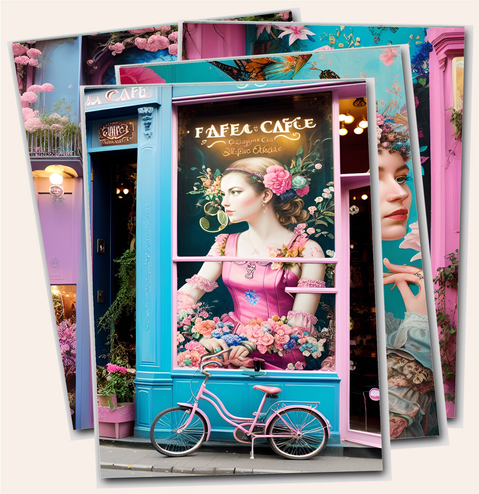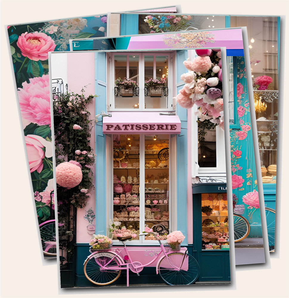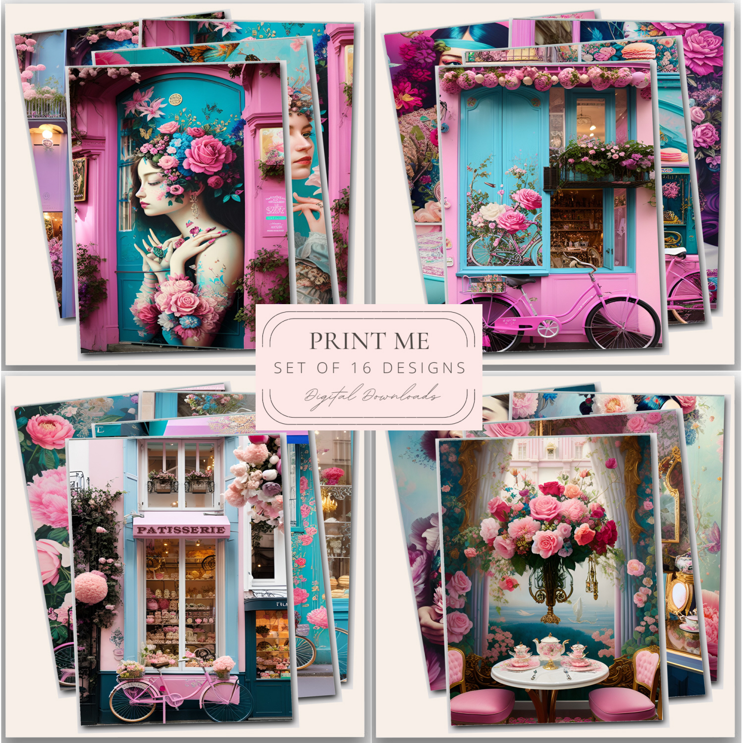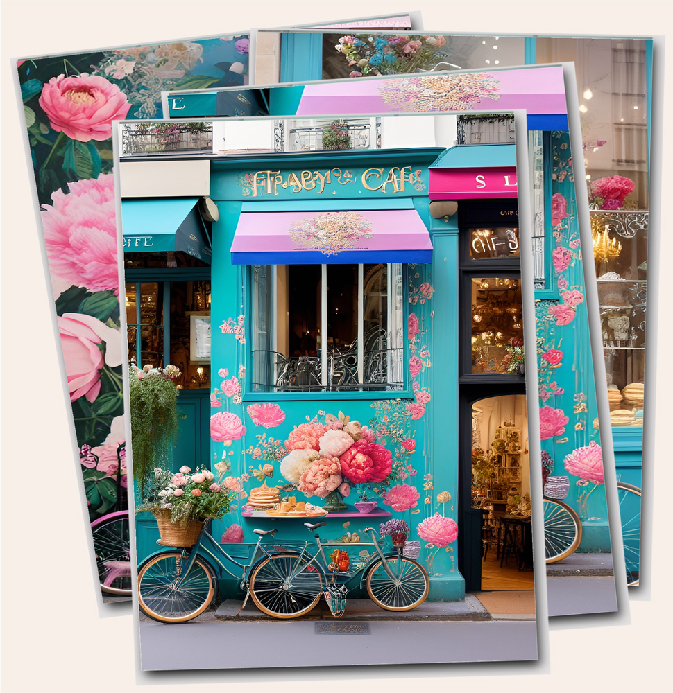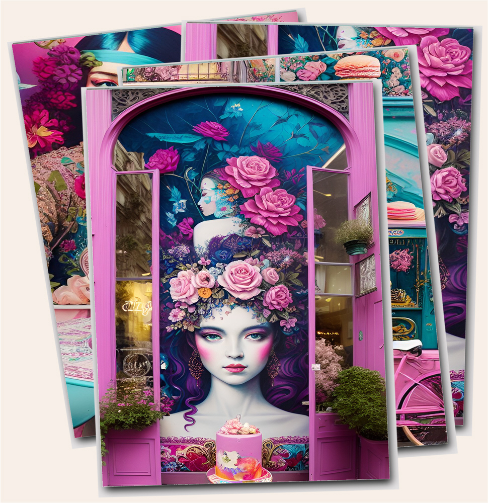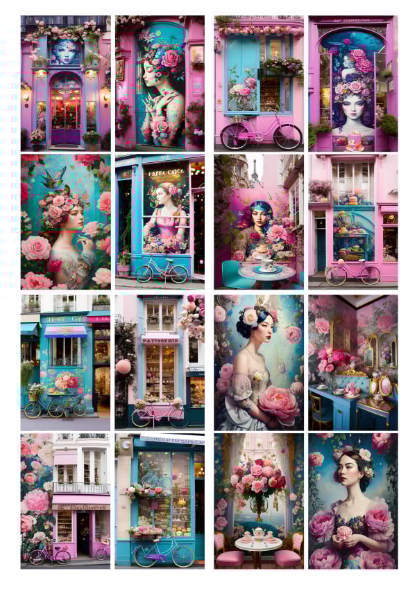 Printable Rococo style digital downloads prints 'The Florist' / printable images of florists, patisserie & café shops.