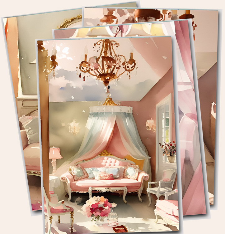 Watercolor Vintage Chic Rooms Digital Prints
