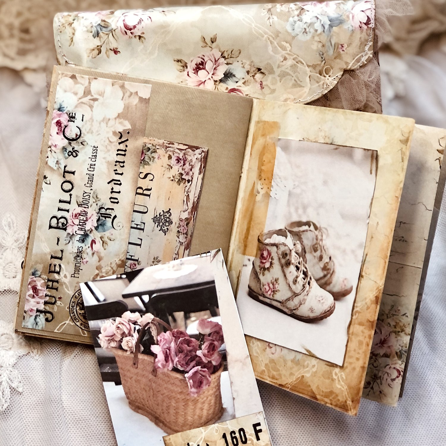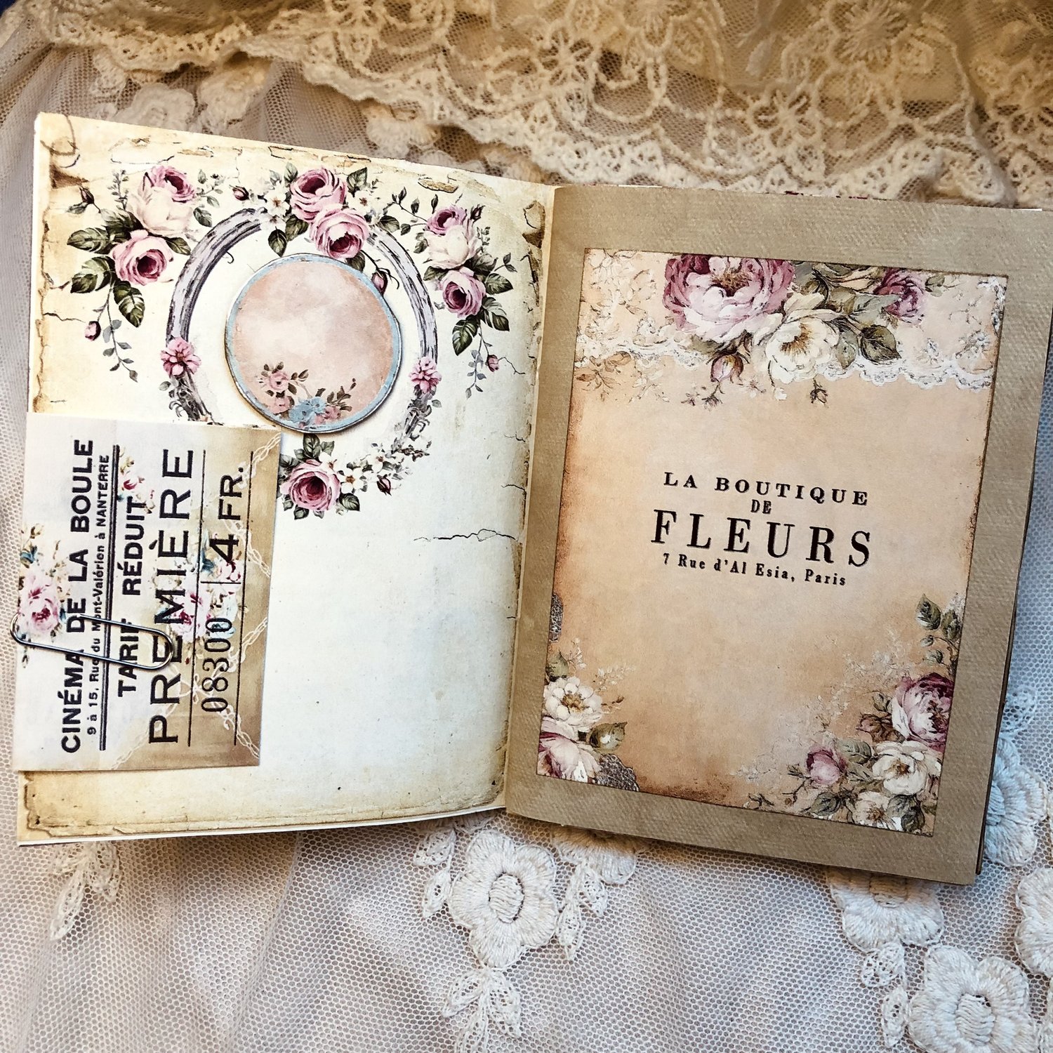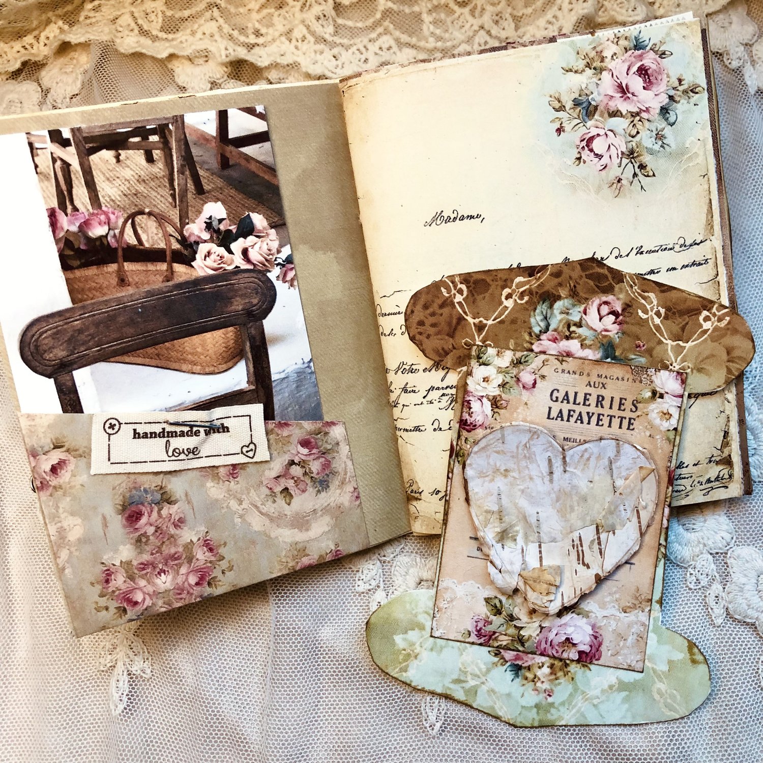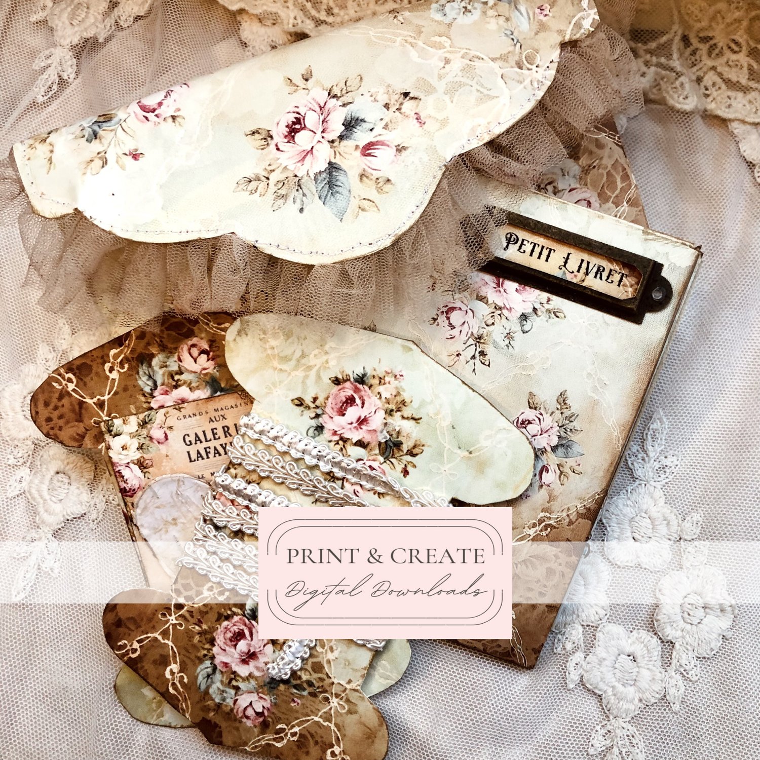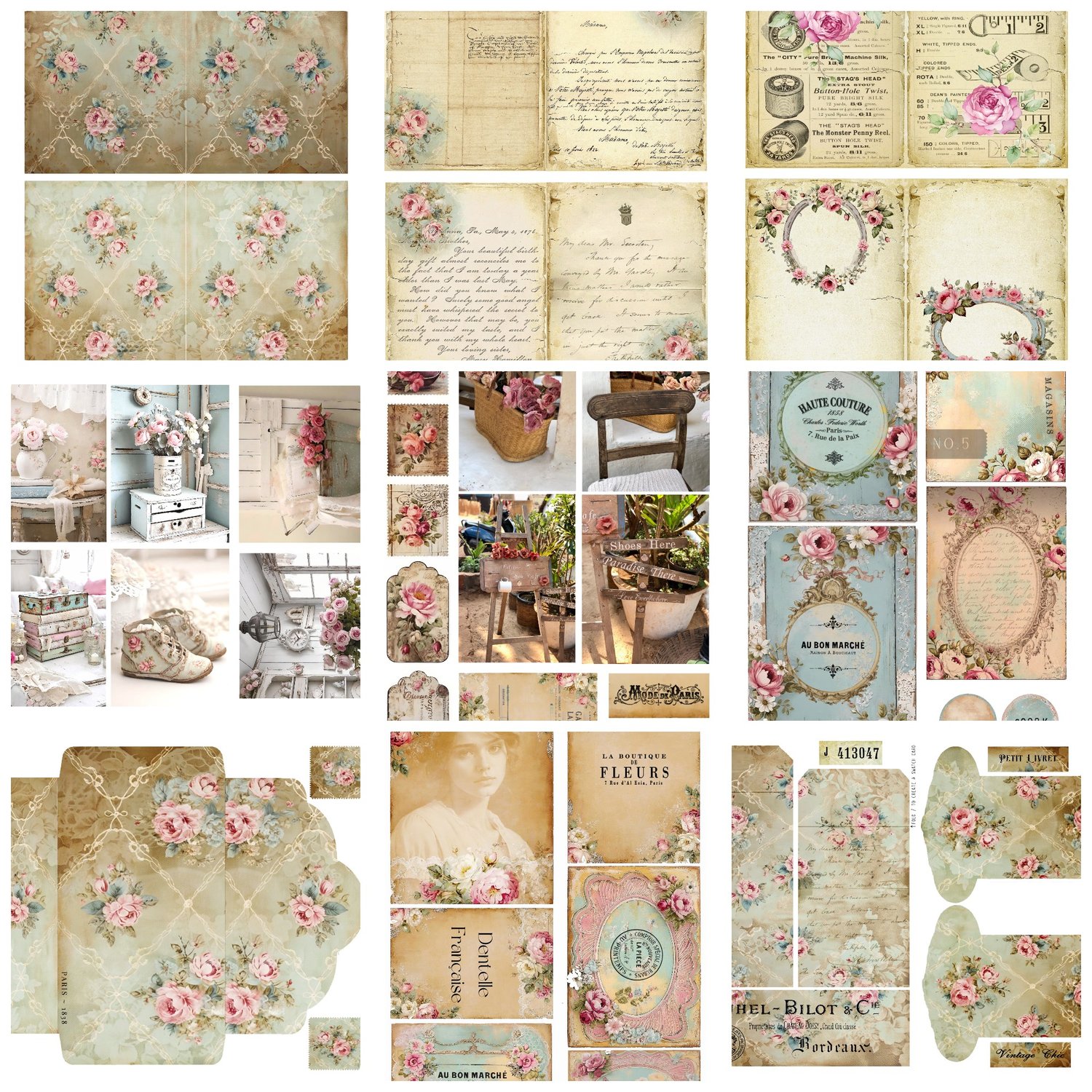 Paper crafting printable kit with roses patterned pages, old-style images and pretty ephemera.