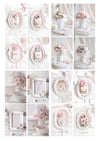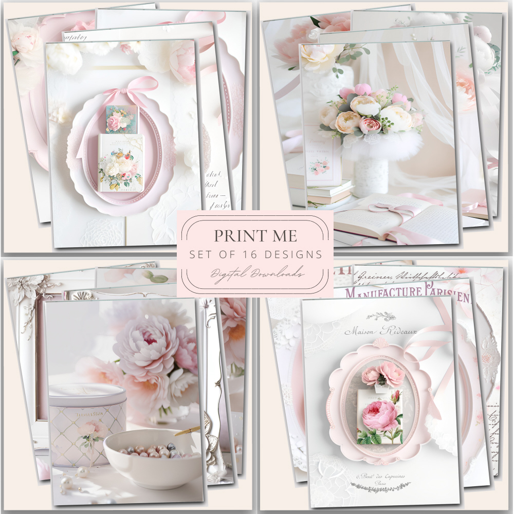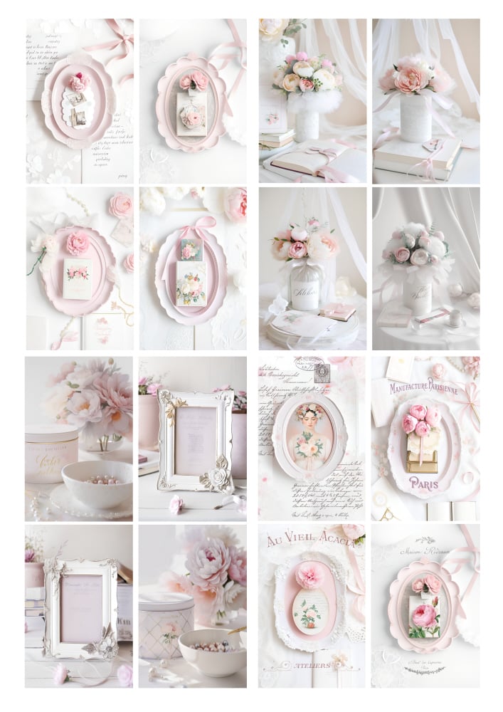 Pink and white collection of peonies and pearls frames and vases digital downloads printable files.